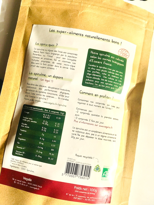 j’avais eu l’occasion de recevoir cette spiruline, hyper qualitative d’ailleurs.
