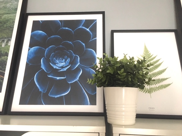 Je suis fan de l’accumulation de cadre sur un mur. Moi même je dévore de cette façon mon intérieur. En ce moment je travaille sur l’impression et l’encadrement de mes propres illustrations. J’aime beaucoup la succulente bleue.