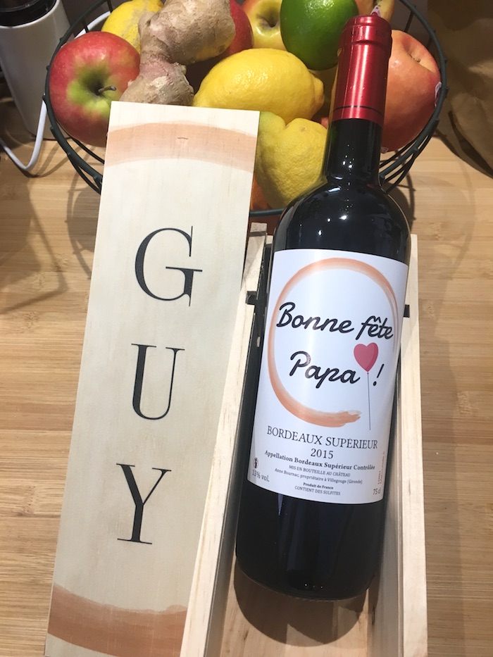Et la bouteille personnalisée est très sympa aussi, nul doute qu’elle ferait son petit effet à mon papa