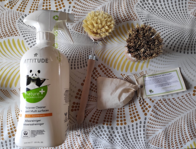 – Nettoyant naturel multi-surface zeste de citron 800ml Attitude – 3,49 € (il sent HYPER bon et je le trouve vraiment très efficace : perso je l’utilise exclusivement en cuisine)