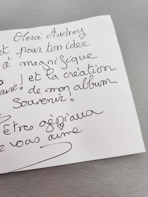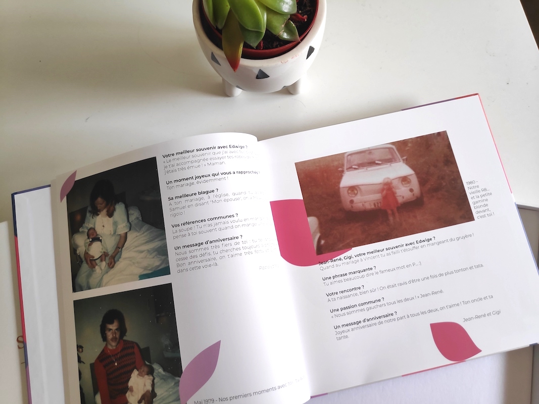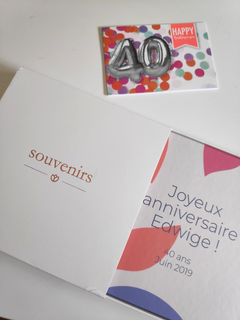 Ça m’avait pris un temps de fou, mais le résultat a été top : un album magnifique dans lequel j’avais tout collé et mis en page, qui a émue ma maman au plus haut point. Les invités avaient vraiment joué le jeu, avec quelques relances bien entendu. Mais au final, une belle déclaration d’amitié et d’amour pour elle. Mais vu le temps et l’énergie passée, je n’étais pas sûre de le refaire.