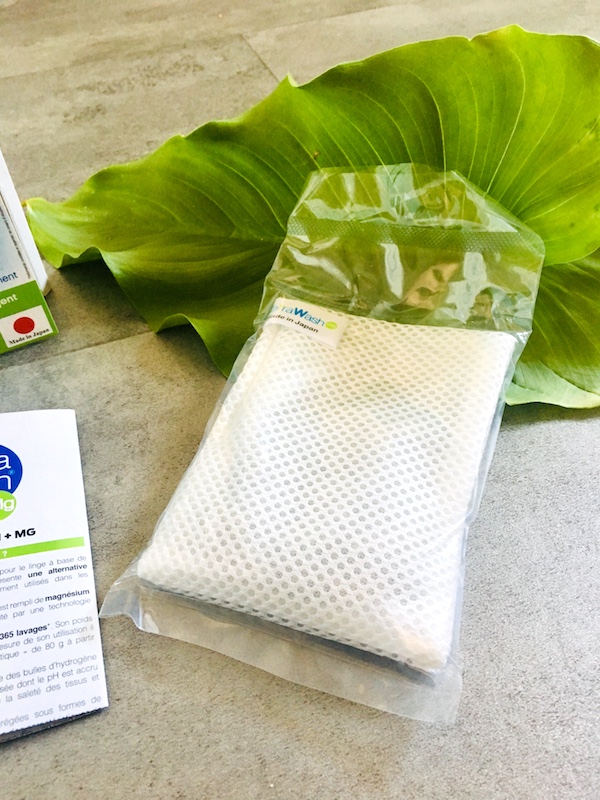 C’est un produit lavant sous forme de sachet micro-perforé qui contient des granulés de magnésium purifié à 99,95% qui remplace les détergents habituels en laissant une eau totalement respectueuse de l’environnement. Techniquement, cela vient du Japon : quand le magnésium entre en contact avec l’eau, il libère des bulles d’hydrogène et forme de l’eau alcaline ionisée.